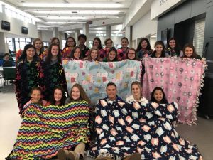 This morning, PCHS students donated blanket material, which were then made into comfort blankets by members of the PCHS Respect for Life Club. Respect for Life Club is one of the largest service organizations at Providence Catholic. The group is dedicated to living out the value that all human life is sacred and should be protected. Students also have the opportunity to take part in the National March for Life in Washington D.C. each year.