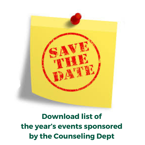 Information about these and all Counseling Dept events will be emailed to parents and students in advance of the event.