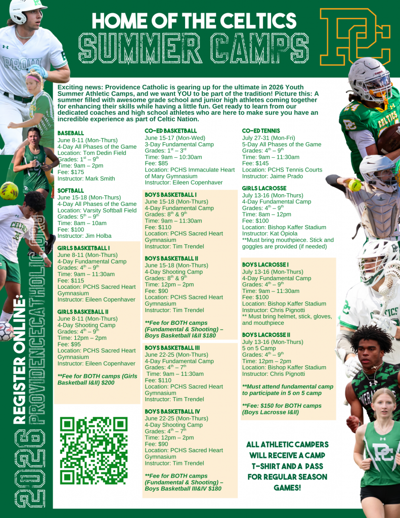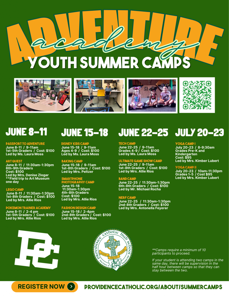Thank you for your interest in Providence Catholic High School’s Youth Summer Camps! Providence Catholic is gearing up for the ultimate in 2026 Youth Summer Athletic Camps AND Adventure Academy, and we want YOU to be part of the tradition! Register below.