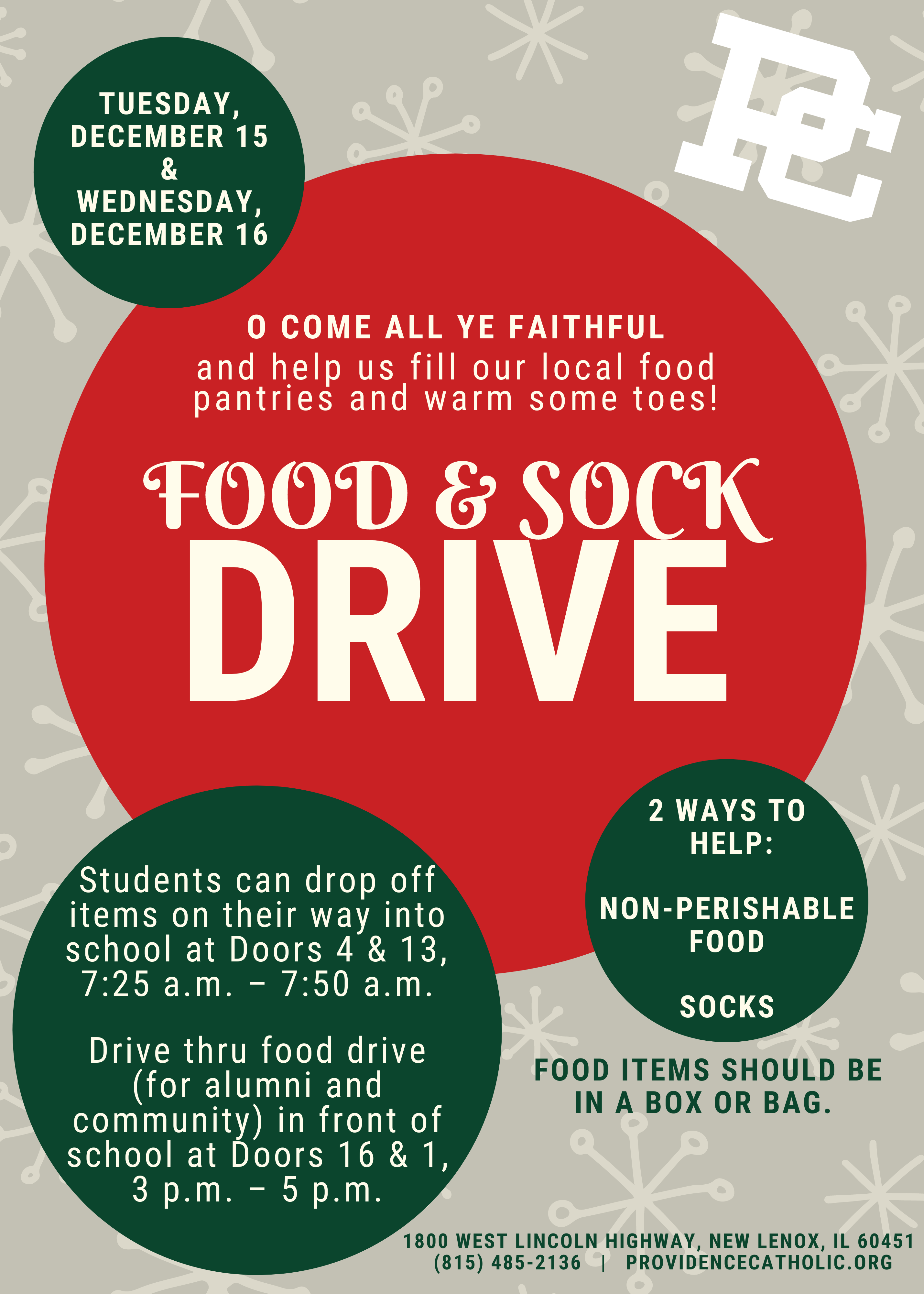 Providence Catholic High School will be hosting a Food & Sock Drive food to restock local food pantries and benefit the homeless this holiday season.