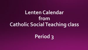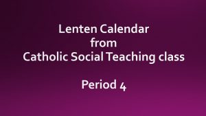 Lenten Calendar 2018: Focusing on Catholic Social Teaching