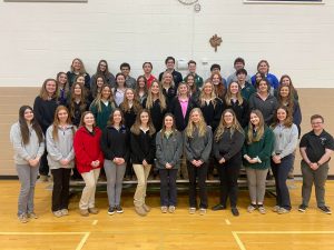 NEW LENOX (April 5, 2022) – Fr. Rich Young, O.S.A., presided over the induction of 64 students and six student directors students into the school’s Augustinian Youth Ministry organization on April 5 at the school. The Augustinian Youth Ministry (AYM) is charged with promoting Christian service and Augustinian spirituality in the community. AYM organizes blood donor drives, food drives, clothing drives, and many other service activities. Their service projects benefit the community at large as well as the high school. AYM members are also required to complete 10 hours of service to their parish or community.
