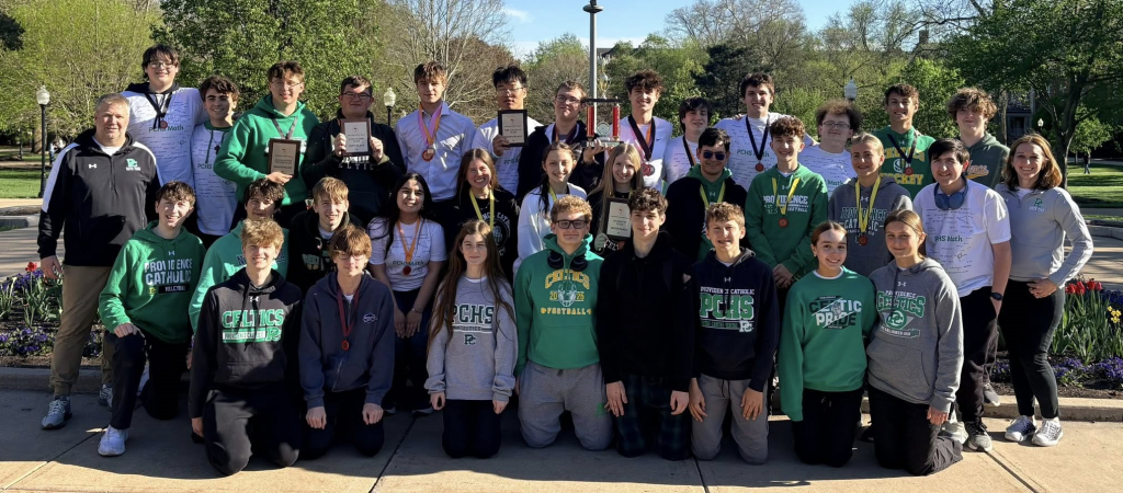 The Providence Catholic Math Team delivered an outstanding performance at the state competition, earning an impressive 9th-place overall finish among Illinois’ top teams. The team also extended its remarkable legacy this season by capturing its eighth consecutive Regional Championship in March, once again qualifying a full roster for the state competition and reinforcing its place among the area’s premier academic programs. Led by Math Team Coach Mrs. Jamie Walker, with assistance from math teacher Mr. Daniel Potempa, the team demonstrated exceptional dedication, depth, and competitive excellence throughout the season.