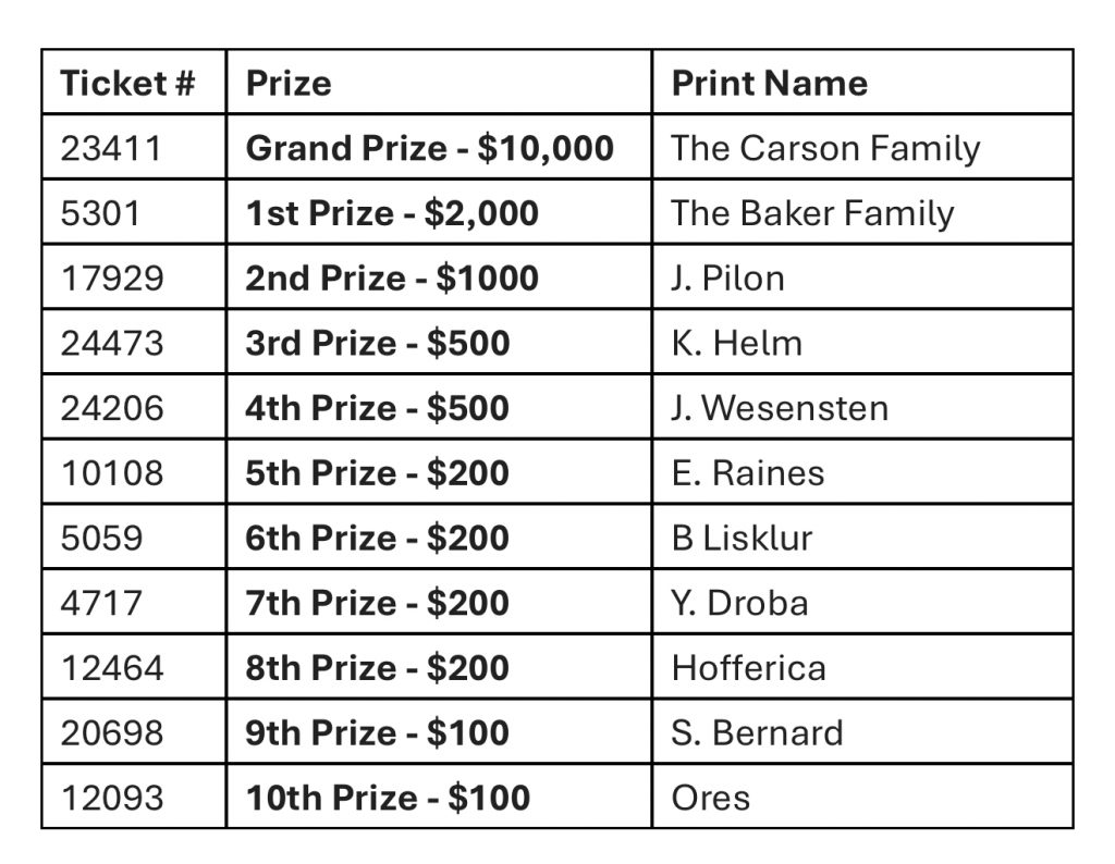 | 3rd Prize – $500 | 12699 | Simenc Family |